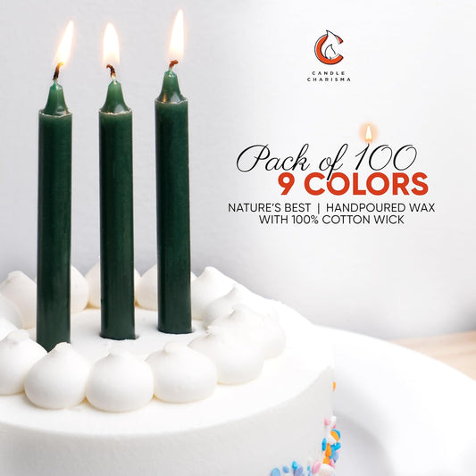 100 Green Spell Candles - 4" Unscented Paraffin Chime Candles, Smokeless & Dripless, Colored Candles, 1.5 Hours Burn Time 0.4" Thick Taper Candles for Rituals, Witchcraft and Parties