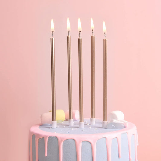 Champagne Gold Long Thin Tapered Birthday Candles - Perfect for Cake Celebrations, Weddings, and Special Occasions