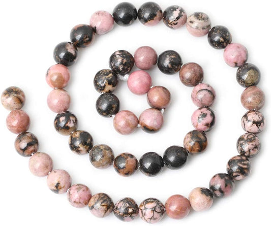 45PCS 8Mm Natural Black Line Rhodochrosite Gemstone Smooth round Loose Beads for Jewelry Making 1 Strand 15"